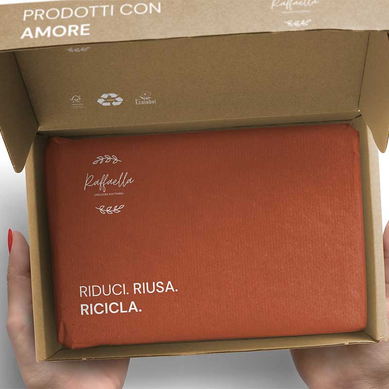 Raffaella voleva sottolineare la sostenibilità nel suo lavoro, partendo da un packaging semplice ed ecologico.
